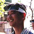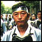 組長 沖田総司(永田鐘丸) 隊歴32年。パレードの先頭をきる一番隊で隊旗を揚げる。颯爽たる総司ぶりは、さすがスポーツマンだけに隊きっての男ぶり。同好会の看板を背負う一人。女性ファンも多い。現在は山師として活動。 |